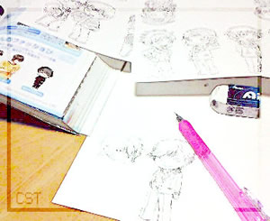絵柄合わせの為に過去の原稿見ながら・・・